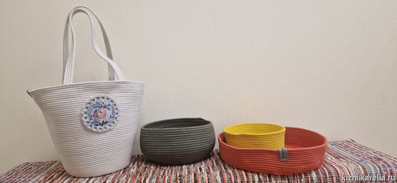 Уютные и практичные корзиночки из хлопкового шнура.