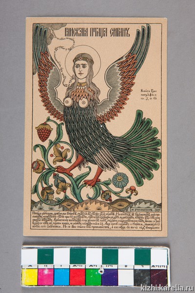 Образы мифических полуптиц-полуженщин нашли широкое отражение в фольклоре, народном лубке, декоративно-прикладном искусстве. В коллекции музея «Кижи» представлены две открытки выдающегося русского художника Ивана Яковлевича Билибина: «Райская птица Алконост» и «Райская птица Сирин». Графические произведения с изображениями райских птиц задумывались мастером как диптих.