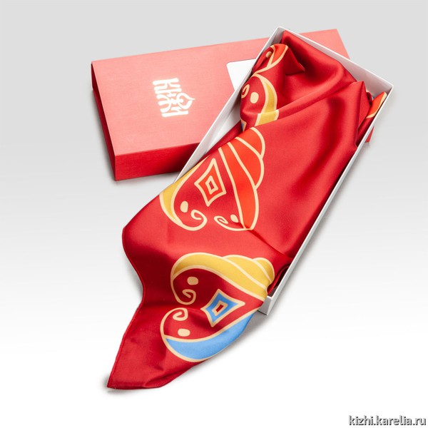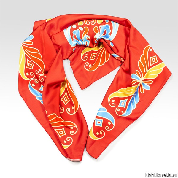 В нашем магазине в Петрозаводске на площади Кирова, 10 а вы найдете яркие принты коллекции шёлковых платков, дизайн которых был разработан на основе элементов исторической росписи предметов быта и мебели крестьян Заонежья XIX века.