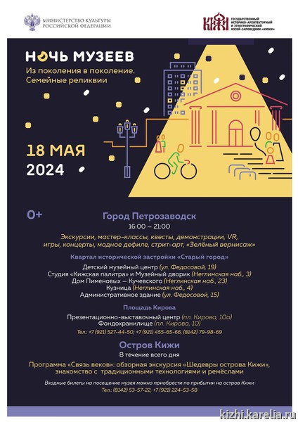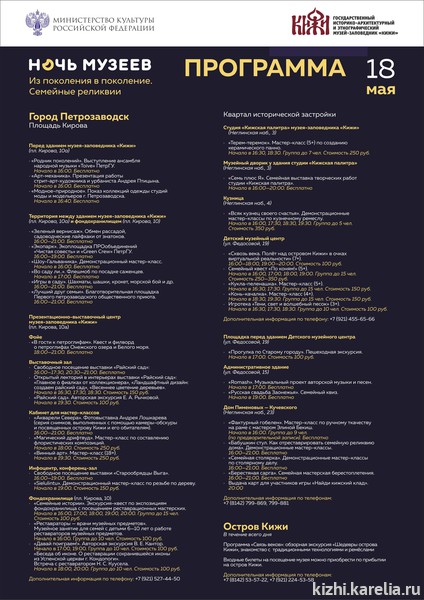 Полная программа акции «Ночь музеев с Кижи» на нашем сайте: https://kizhi.karelia.ru/