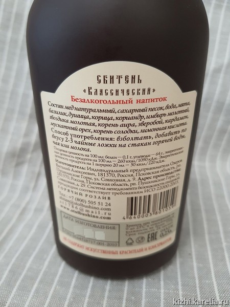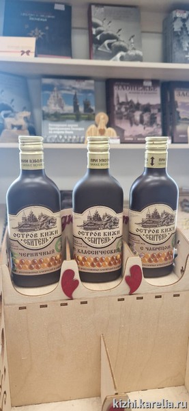 Музейный магазин «Кижи» в Петрозаводске предлагают фирменный сбитень — старинный славянский напиток из воды, мёда и пряностей.