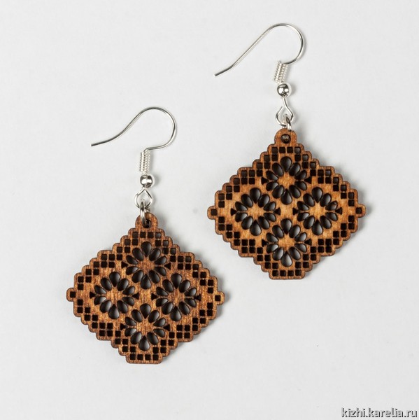В кижских сувенирных магазинах богатый выбор резных серег из натурального дерева. Представляем модели с традиционными элементами заонежской вышивки и кижской деревянной резьбы. При этом никто не скажет, что это старомодно!