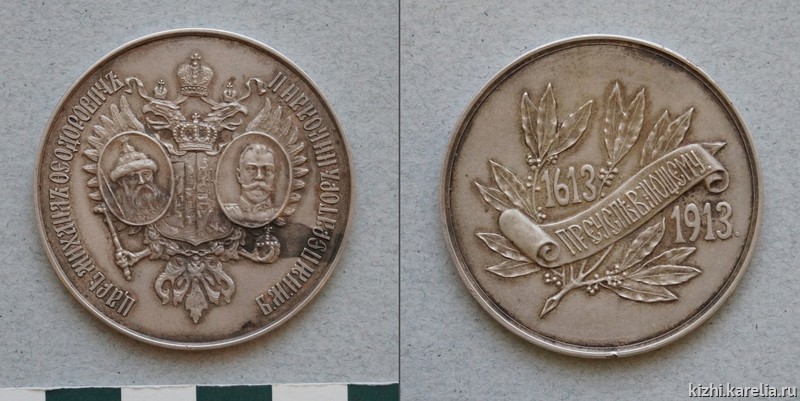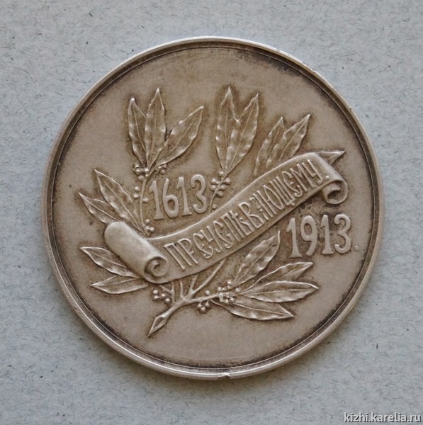 На аверсе медали — изображение Российского государственного герба — двуглавого орла. На крыльях орла в овалах — портреты царя Михаила Фёдоровича и императора Николая II. По обе стороны от портретов надписи кириллическим шрифтом: «Царь Михаил Федорович» и «Б. М. (Божьей Милостью) Император Николай II». На реверсе в центре — изображение лавровой ветви, поверх неё наискосок изображена лента с надписью: «ПРЕУСПЕВАЮЩЕМУ». Выше дата «1613», в правой части реверса, ниже ленты — дата: «1913».