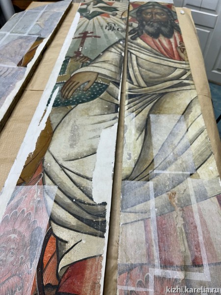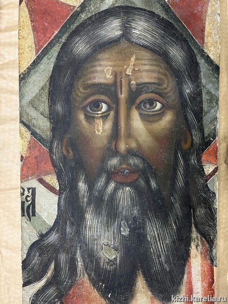 «Состояние иконы аварийное,— пояснила Надежда Куусела, реставратор музея „Кижи“.— Наблюдаются множественные отставания и вспучивания паволоки и левкаса, приподнятый кракелюр, осыпи и утраты. Следует укрепить красочный слой и принять предварительные меры консервации во избежание дальнейших осыпей».