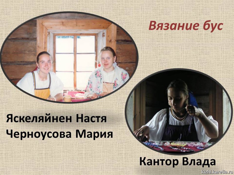 - Бисерные работы: изготовление бус, серег-бабочек (Ж. Гвоздева, А. Яскеляйнен, М. Черноусова, И. Гаазе, В. Кантор, К. Наумова);