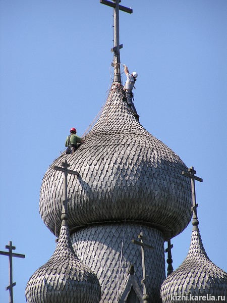 Сегодня, 25 июня, на острове Кижи открывается выставка, посвященная мастерам, принимавшим участие в сохранении уникального памятника архитектуры — церкви Преображения Господня Кижского погоста. Сейчас завершается монтаж выставки в трапезной всемирно известного памятника.