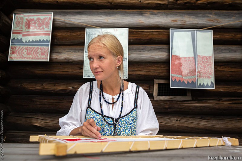 Гости острова Кижи часто могут видеть на протяжении всего экскурсионного маршрута мастеров в народных костюмах, которые демонстрируют старинные промыслы и ремесла — ткут, вышивают, жнут, выполняют плотницкие работы, вяжут сети, куют.