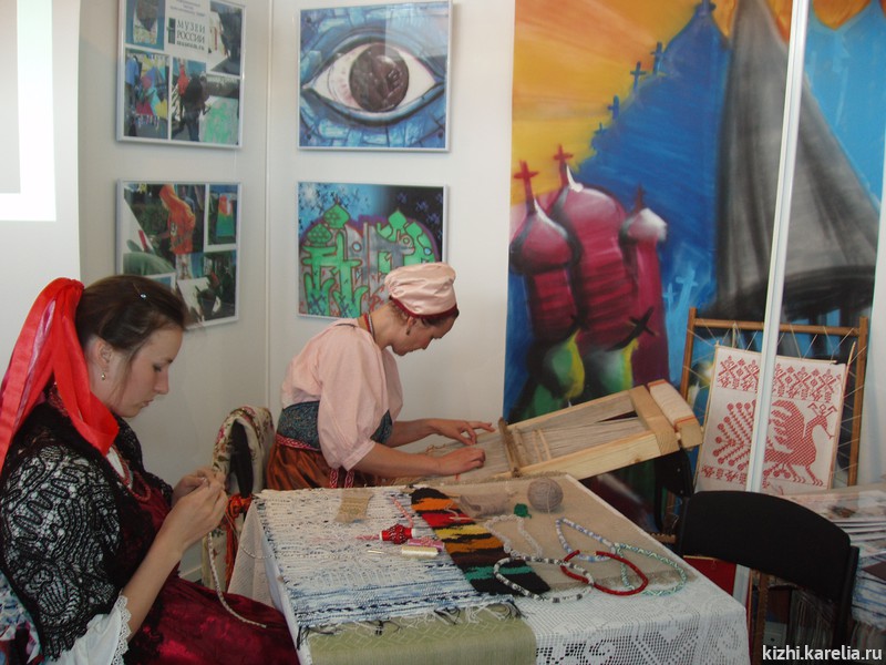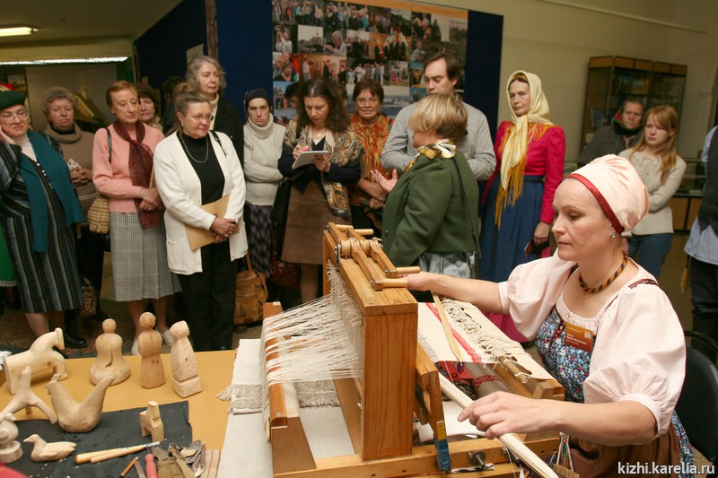 На демонстрацию ткачества, вышивки и кружевоплетения были приглашены студенты Петрозаводского колледжа культуры и искусства: Наталья Егорова, Елена Хрущелевская, Надежда Афоничева, Ольга Зайцева и Татьяна Секушина.