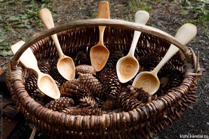 «Гостям острова я рассказываю не только про ложки, резьбой которых занимаюсь профессионально, но еще и про другую кухонную утварь локального характера, например — про рыботаску — традиционный столовый прибор жителей Заонежья или про мутовку — современный миксер».
