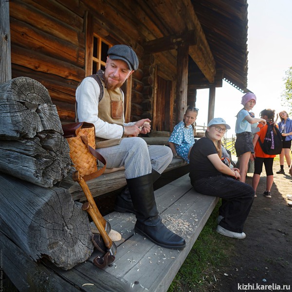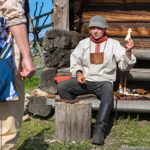 Петр родом из Киркиекки Питкярантского района. Живет в Петрозаводске. Уже второй сезон демонстрирует свое ремесло на острове Кижи.