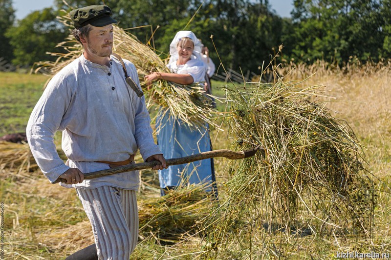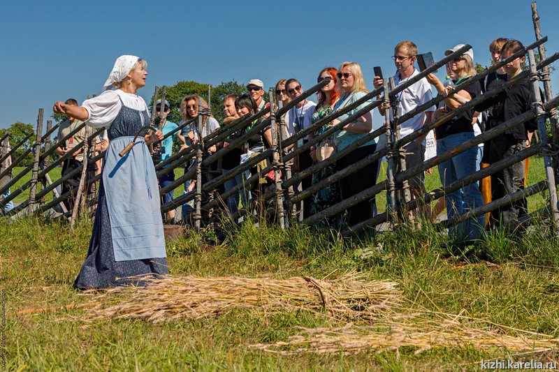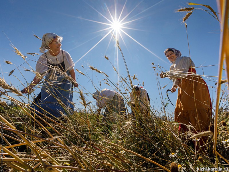 Сейчас в этнографической реконструкции «Заонежская жнитва» участвуют сотрудники музея. Из собранной ржи в течение года будут печь знаменитые кижские калитки.