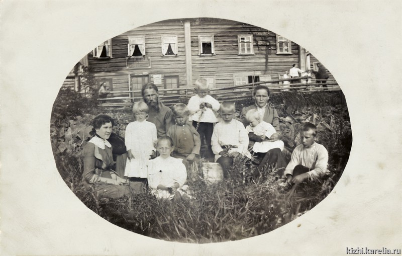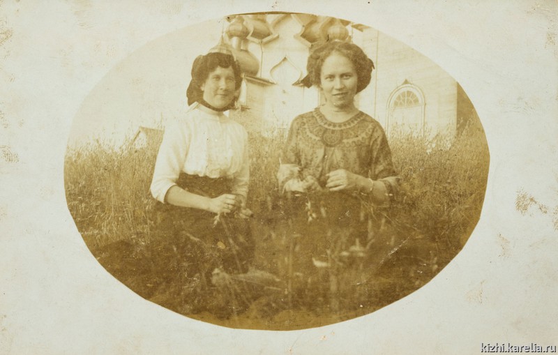 В ходе атрибуции фотографии выяснилось, что «Веруся» — на снимке слева — Вера Александровна (родилась 11.09.1887), сводная сестра Михаила Александровича (1874–1943), последнего Кижского священника из рода Русановых. Их отец Александр Русанов (1847–1905), учитель Сенногубского и Кижского сельских училищ, в конце жизни стал церковнослужителем — псаломщиком в Кижском приходе. Он был женат дважды на священнических дочерях. Первая жена умерла рано, в браке с ней родился сын Михаил. Запечатленная на фотографии Вера стала одной из трех сестер, родившихся во втором браке. Известно только, что она вышла замуж за учителя Дмитрия Ивановича Приезжего, уроженца деревни Корба.