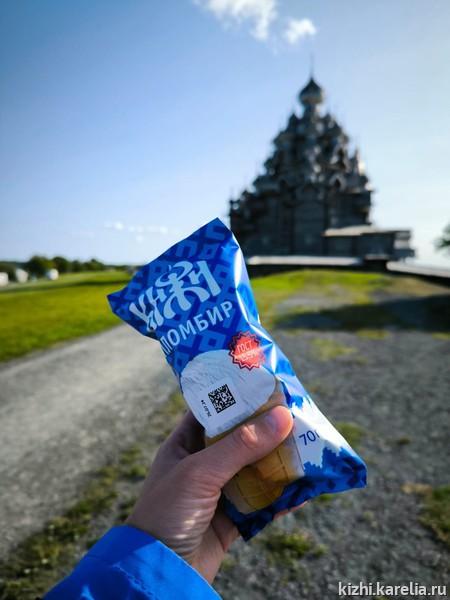 Новинка — сливочное мороженое под брендом «Кижи». Белоснежный пломбир в вафельном стаканчике. Замечательный вкус, знакомый с детства. То, что нужно в жаркий день!