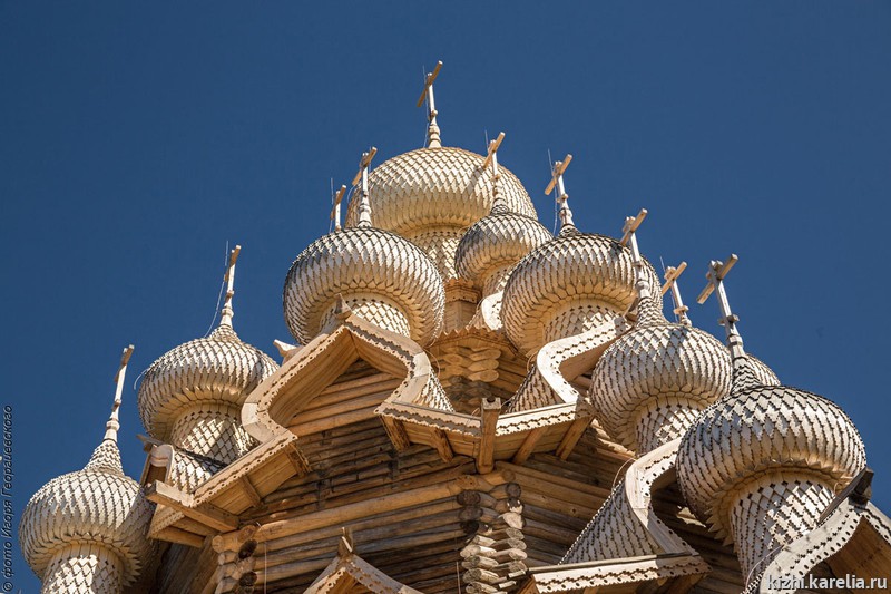35 тысяч лемешин, покрывающих купола Преображенской церкви, меняют каждые несколько десятилетий, что связано с износом материала.