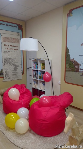 За счет средств партнеров и сотрудников музея было полностью отремонтировано помещение для Детского центра. Из Петрозаводска привезены кресла-мешки, модульные столы, стулья-трансформеры, торшер, книжный стеллаж, телевизор, песочный световой стол, театр теней по мотивам русских народных сказок.