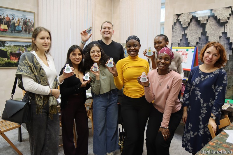 Студенты медицинского института ПетрГУ из Перу, Колумбии, Венесуэлы, Иордании, США, Индии, Замбии и Мурманской области стали гостями музея «Кижи». Молодые люди посетили на только выставку «Отроки и зумеры», но и приняли участие в творческом мастер-классе. Гости познакомились с техникой декупажа и своими руками создали очаровательные украшения в форме матрёшек, которые будут напоминать им о гостеприимной Карелии.