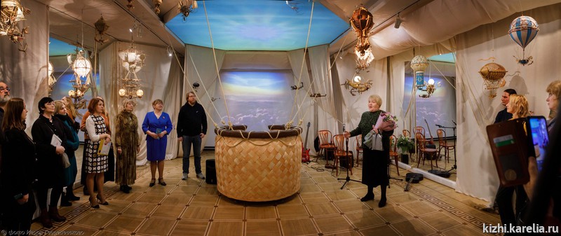 В этом пространстве парят необычные летательные аппараты, бегут облака, летят птицы, а в центре — огромная гондола воображаемого воздушного шара. По замыслу дизайнера выставки Даниила Бакалина в ней можно почувствовать себя воздухоплавателем и сфотографироваться на память.