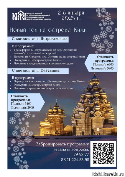 Специально для вас мы подготовили программу «Новый год на острове Кижи»: