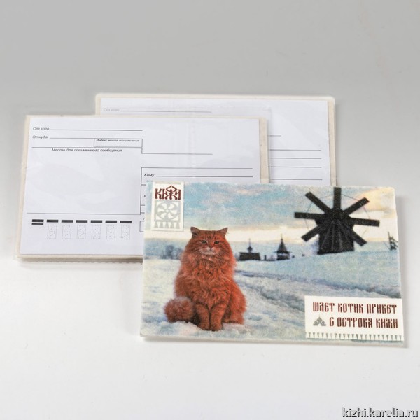 - даже шерстяные открытки с изображением знаменитого Кижского кота Кеши.