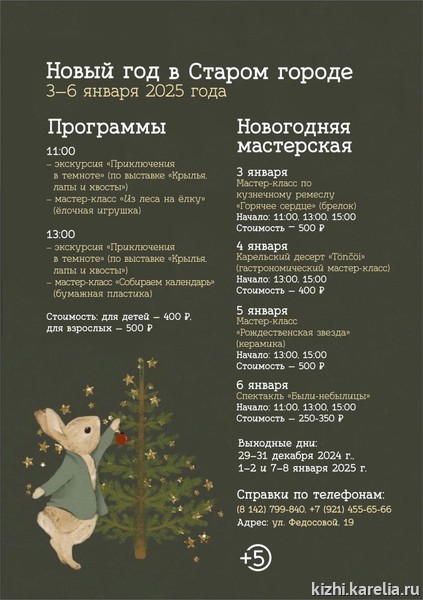 Дорогие родители, бабушки и дедушки, планируйте зимние каникулы ваших детей и внуков вместе с Детским музейным центром «Кижи»! Двери нашего центра открыты для вас с 3 по 6 января.