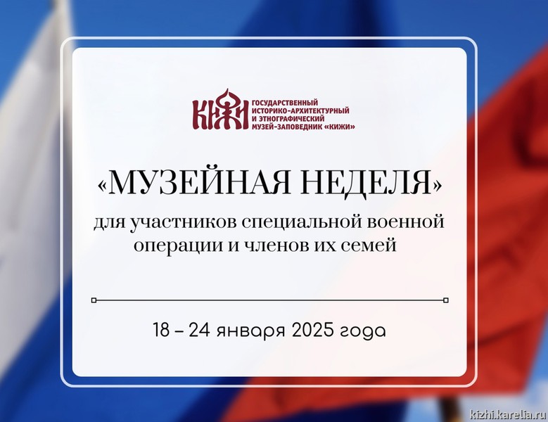 Напоминаем, что в музее-заповеднике «Кижи» право бесплатного посещения экспозиций и выставок участникам СВО и членам их семей предоставляется на постоянной основе в пределах режима работы музея.