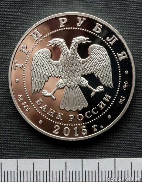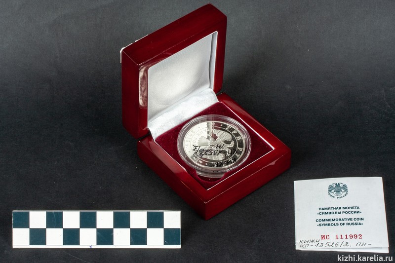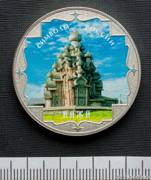 Из истории вопроса: Кижской тематике в разное время были посвящены есколько серебряных памятных. В 1995 г. выпущена монета «Ансамбль деревянного зодчества в Кижах», серия «Памятники архитектуры России», номиналом 3 рубля. В 2012 г. в Республике Палау была выпущена серебряная монета «Кижский погост», серия «Мир чудес» («Kizhi pogost», «World of wonders»), номиналом 5 долларов.