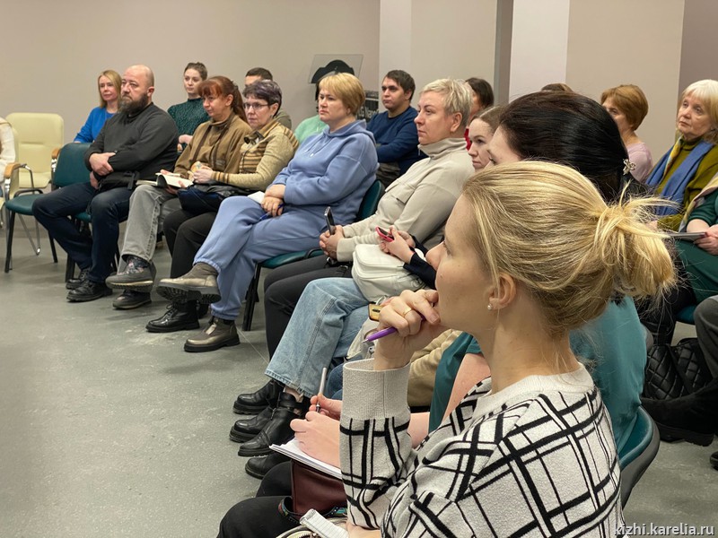 На организационное собрание пришли 40 человек, готовых приступить к учебе на курсах экскурсоводов острова Кижи. Это люди разных возрастов — от студентов до зрелых мужчин и женщин. Несколько желающих подключились к встрече дистанционно.
