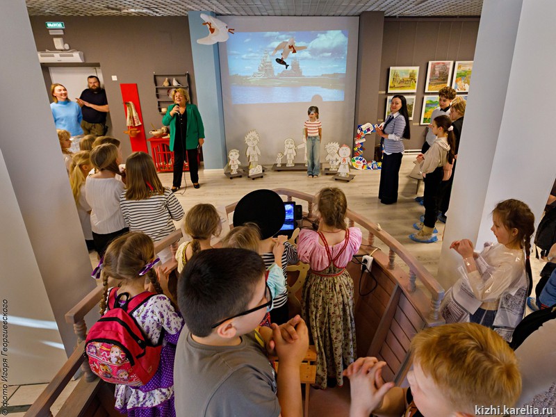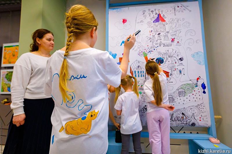 Светлана Петрякова, руководитель студии: «Перед вами рисунки и керамические работы, созданные еще первыми студийцами, и работы нынешних юных художников, для которых это первая в жизни выставка. Все поколения студии вдохновил на творчество остров Кижи с его деревянными храмами, живописной природой и крестьянским укладом жизни». На выставке можно познакомиться с «говорящим» шкафом, увидеть мегараскраску и раскрасить остров разными цветами, посидеть на палубе корабля и даже самим создать нужную погоду — дизайнер Наталья Егорова придумала интерактивные площадки для разных возрастов.