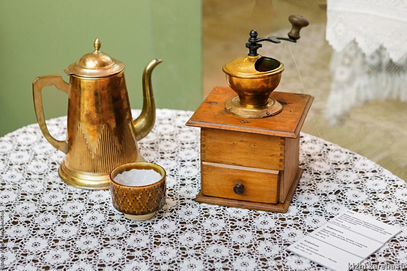 Авторы опирались на богатые фондовые коллекции музея «Кижи», но показали их необычно: вдоль экспозиции выставили витрины, стилизованные под открытые для посетителей ресторанов-кафе плиты с вытяжками; на них разместили старинные кухонные предметы быта, а с помощью проекции высветили их современные аналоги. Например, через берестяную кужонку посетитель увидит знакомую пластиковую емкость для муки и, возможно, задумается о трансформации технологий и ценности предметов.