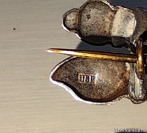 Примечательно, что изготовил эту брошь другой мастер — на броши кроме пробирного клейма в нескольких местах поставлено клеймо мастера. Но из трёхбуквенной аббревиатуры уверенно читается только одна буква «А».
