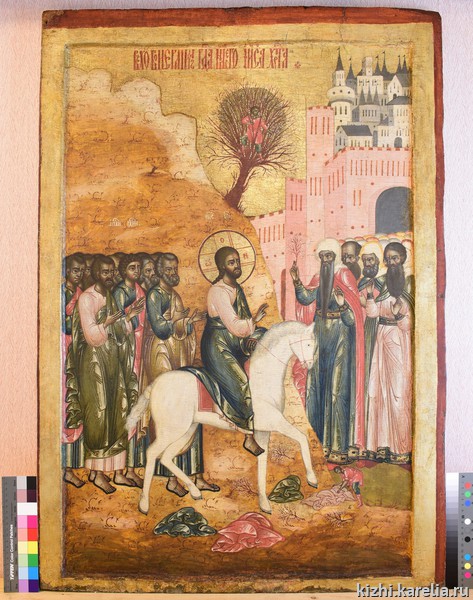 История праздника через икону Вход Господень в Иерусалим (перв. четв. XVIII в.) из праздничного ряда церкви Преображения на острове Кижи.