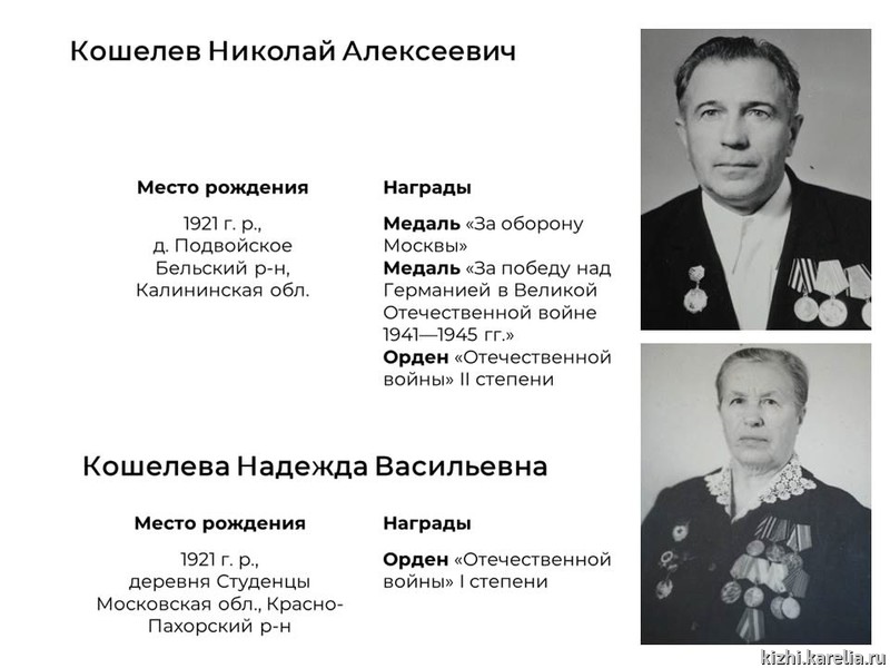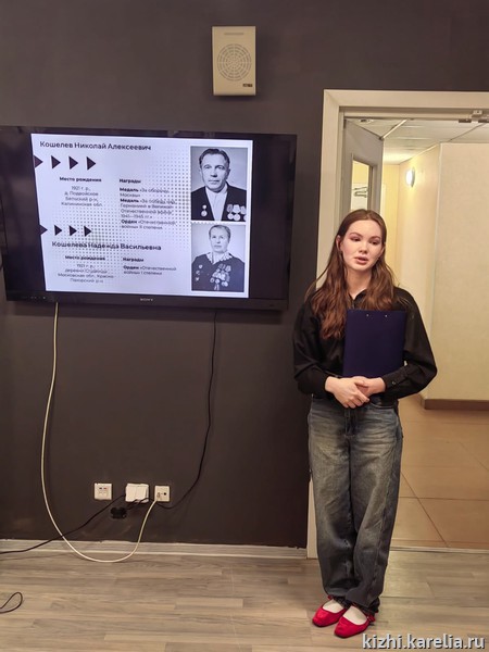 - «Мой дедушка, Филатов Николай Яковлевич, родился в 1920 году в деревне Вехручей Прионежского района. В 1941 году был призван в Красную Армию. В Великой Отечественной войне участвовал с июля 1941 по декабрь 1944 года, был ранен.