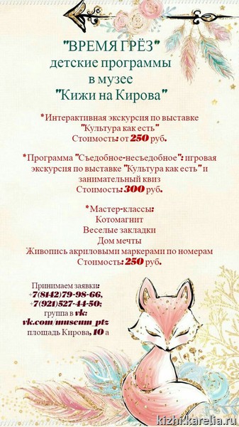 «Время грез»: летние каникулы с музеем «Кижи» в Петрозаводске на площади Кирова, 10а