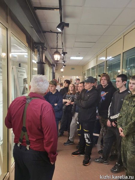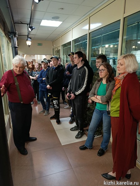 С выставкой уже познакомились будущие архитекторы и реставраторы — студенты Петрозаводского архитектурно-строительного техникума. Экскурсию для будущих коллег провел А. Л. Ковальчук.