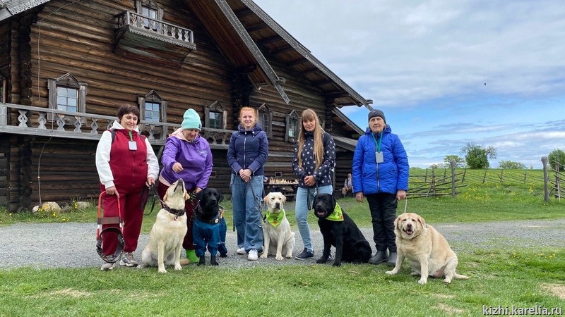 На острове Кижи побывали необычные гости: 5 выпускников Российской школы подготовки собак-проводников Всероссийского общества слепых со своими владельцами.