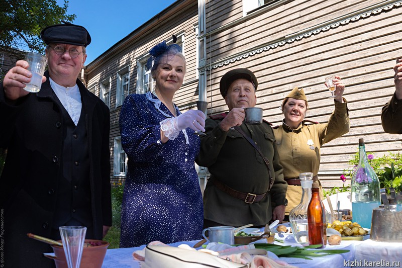 Возвращение домой с фронта и веселое застолье на свежем воздухе, встреча однополчан и погоня за воришкой, пункт милиции и комендатура, контора Госбанка СССР и центральный государственный архив НКВД Карело-Финской ССР, госпиталь и лавка, пожарная станция и узел связи, танцплощадка и библиотека — праздник музея «Кижи» «Город Победы» в квартале исторической застройки Петрозаводска собрал огромное количество участников и гостей.