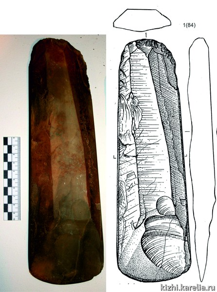 Среди находок — коллекция сланцевых орудий обработки дерева. Особый интерес представляет крупное, полностью шлифованное сланцевое тесло (КП7026/84, размер 2×8 х29 см).