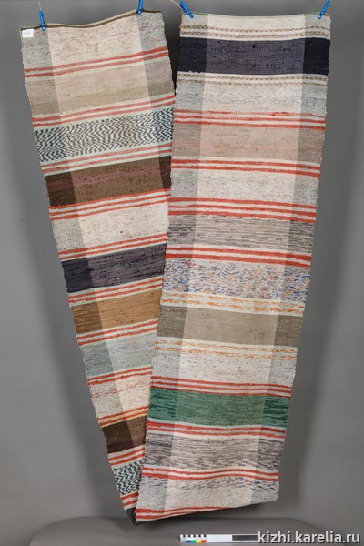 С конца XIX века в крестьянских домах Олонецой губернии появляются дорожки или половики, сотканные на домашних ткацких станках. Половики выполнялись из ветоши, это практичный и разумный подход к повторному использованию старых тканей. Декоративный эффект достигался за счет цветовой гаммы и фактуры ткани. Ритм создавало чередование полос разного цвета и ширины.