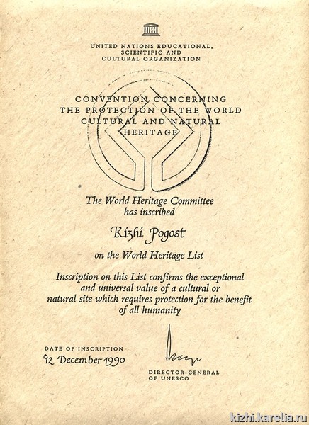 Объект всемирного наследия ЮНЕСКО «Кижский погост»