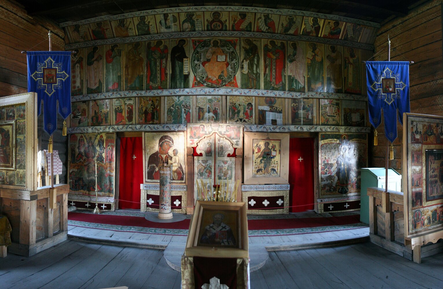 Действующая «летняя» церковь с восстановленным на реконструированных тяблах иконостасом.