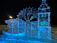Завершена работа над ледяной скульптурой к 60-летию музея «Кижи» на набережной Онежского озера у Петрозаводской мэрии.