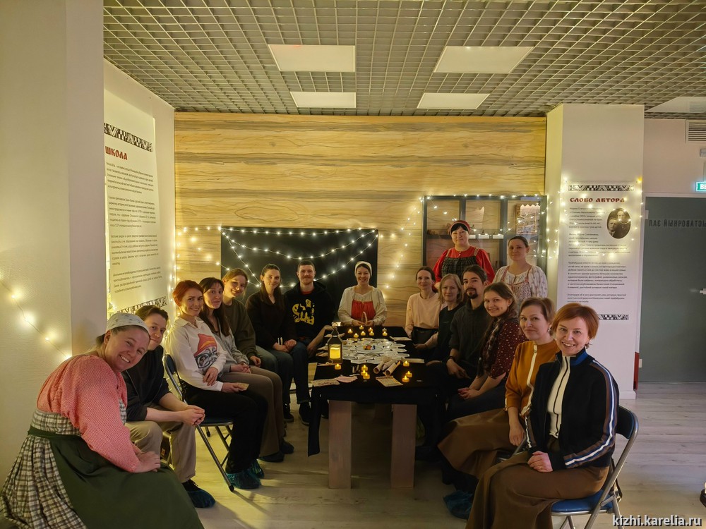 Под чутким руководством ведущего участники разгадывали хитроумные головоломки, знакомились со значениями предметов в гаданиях. Вместе с фольклорным ансамблем «Кижи» побывали на молодежных беседах, участвовали в танцах и святочных играх.